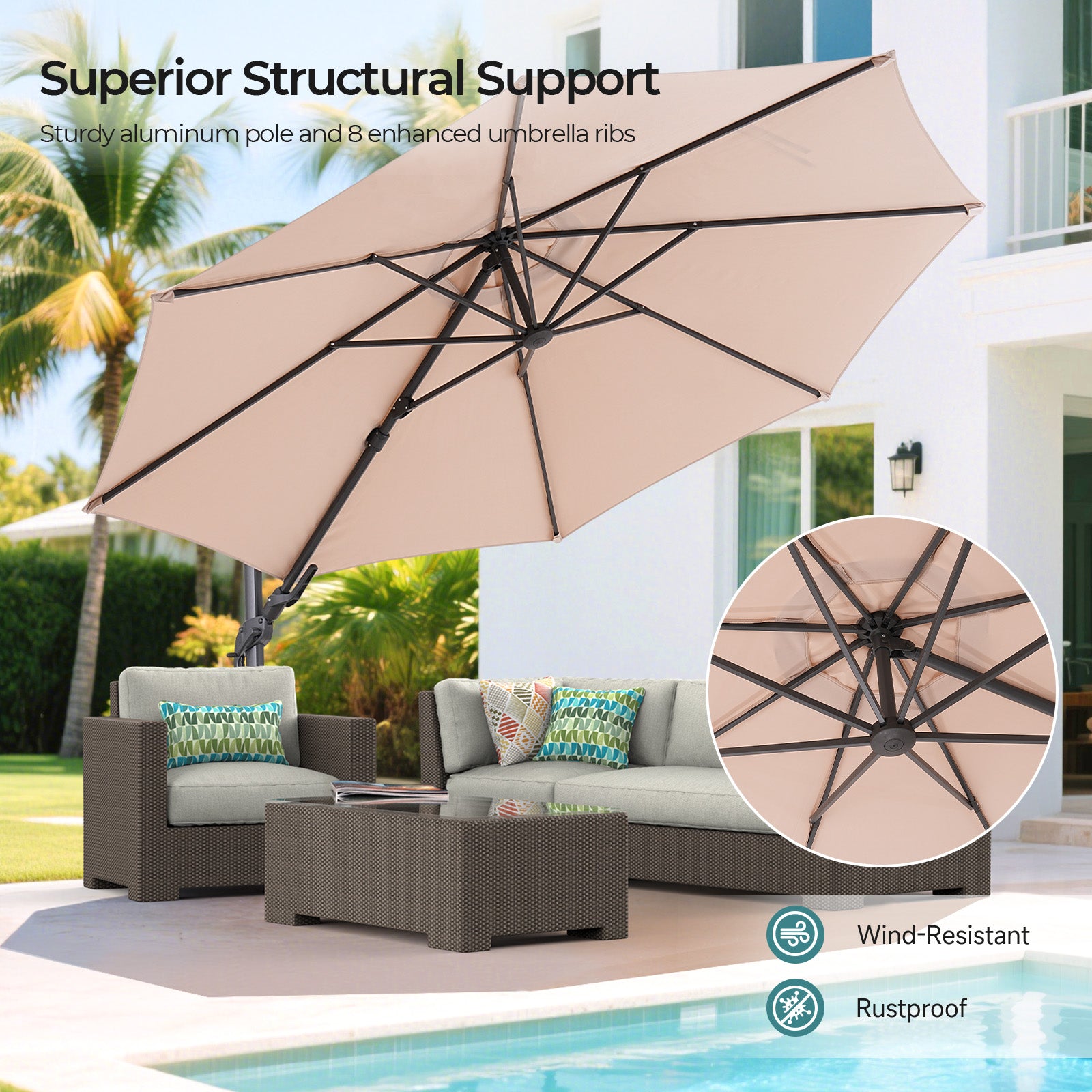 Vitarpatio 11ft Outdoor Patio Umbrella, 360° Rotation Large Cantilever Offset Umbrella Round Hanging Market Umbrella with Crank and Tilt