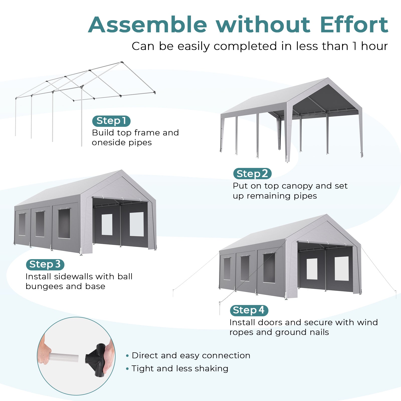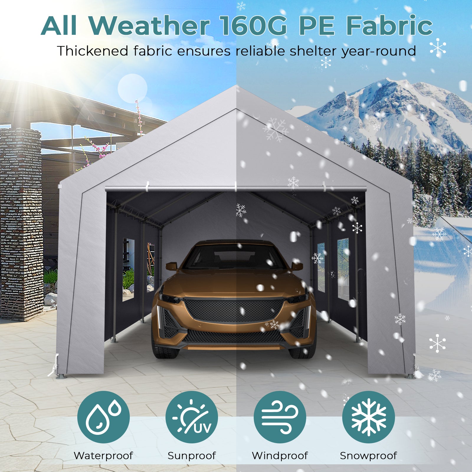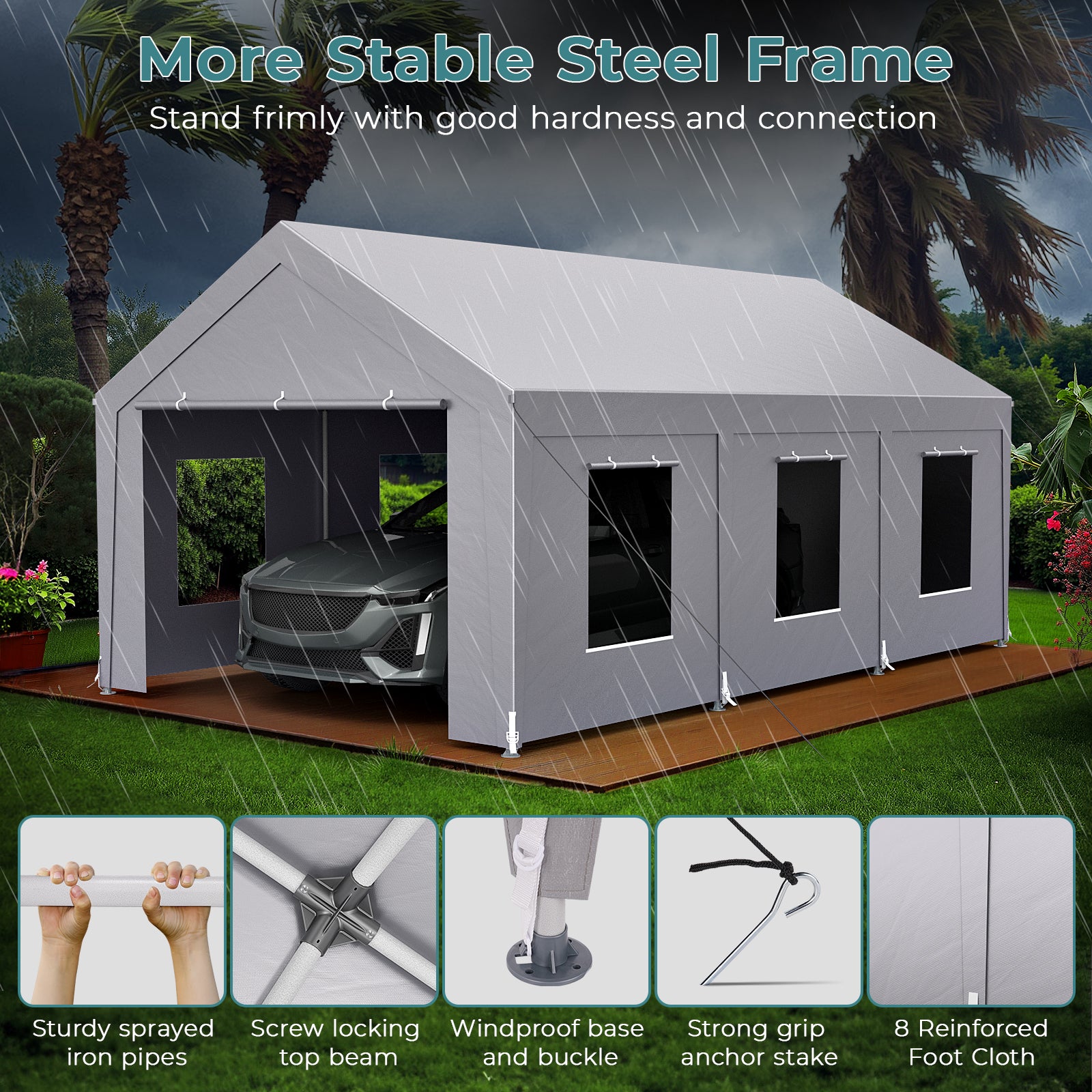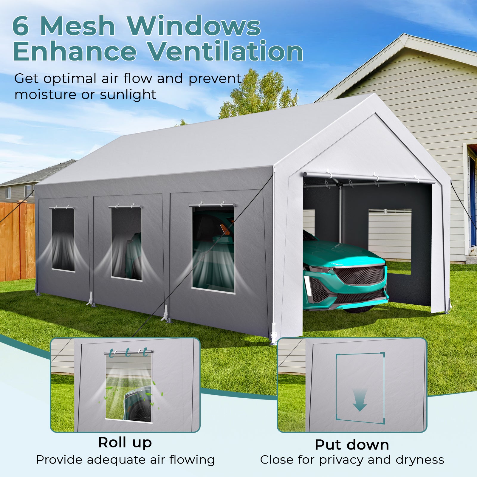12'x20' Heavy Duty Carport with 6 Roll-up Mesh Windows & Rolling Door
