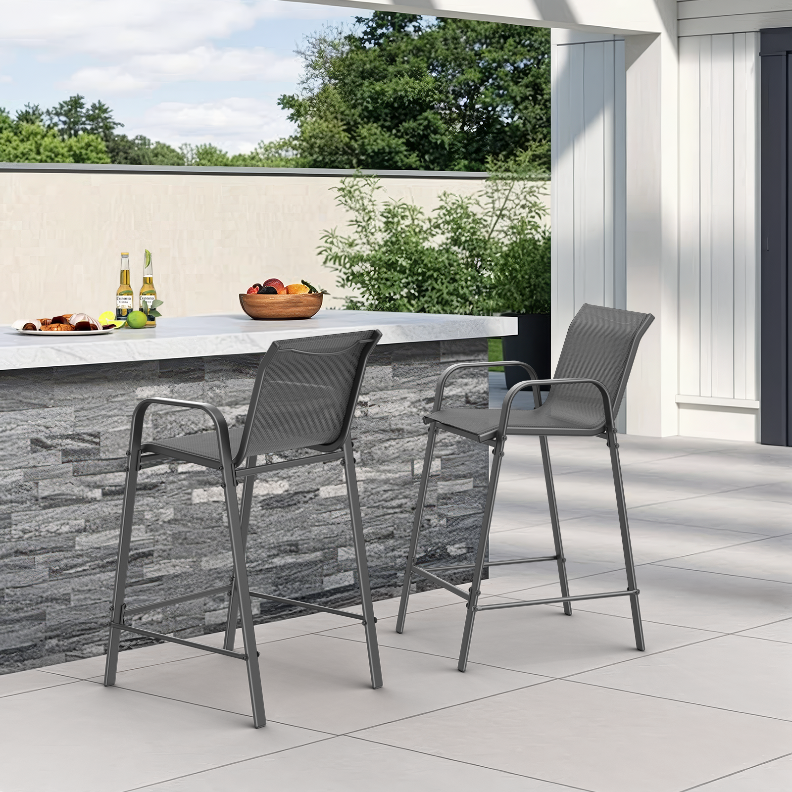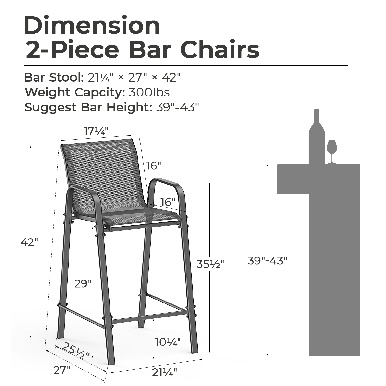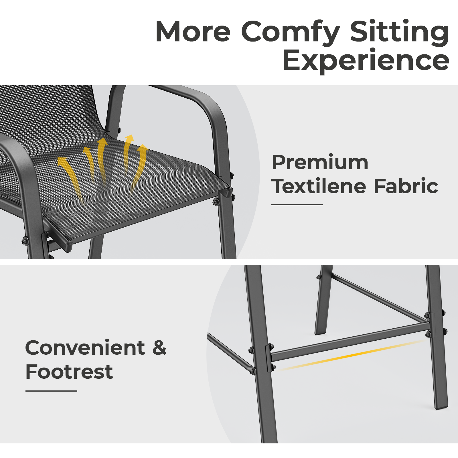 2 Piece Outdoor Textilene Bar Chairs, Bar Height Patio Bar Stools