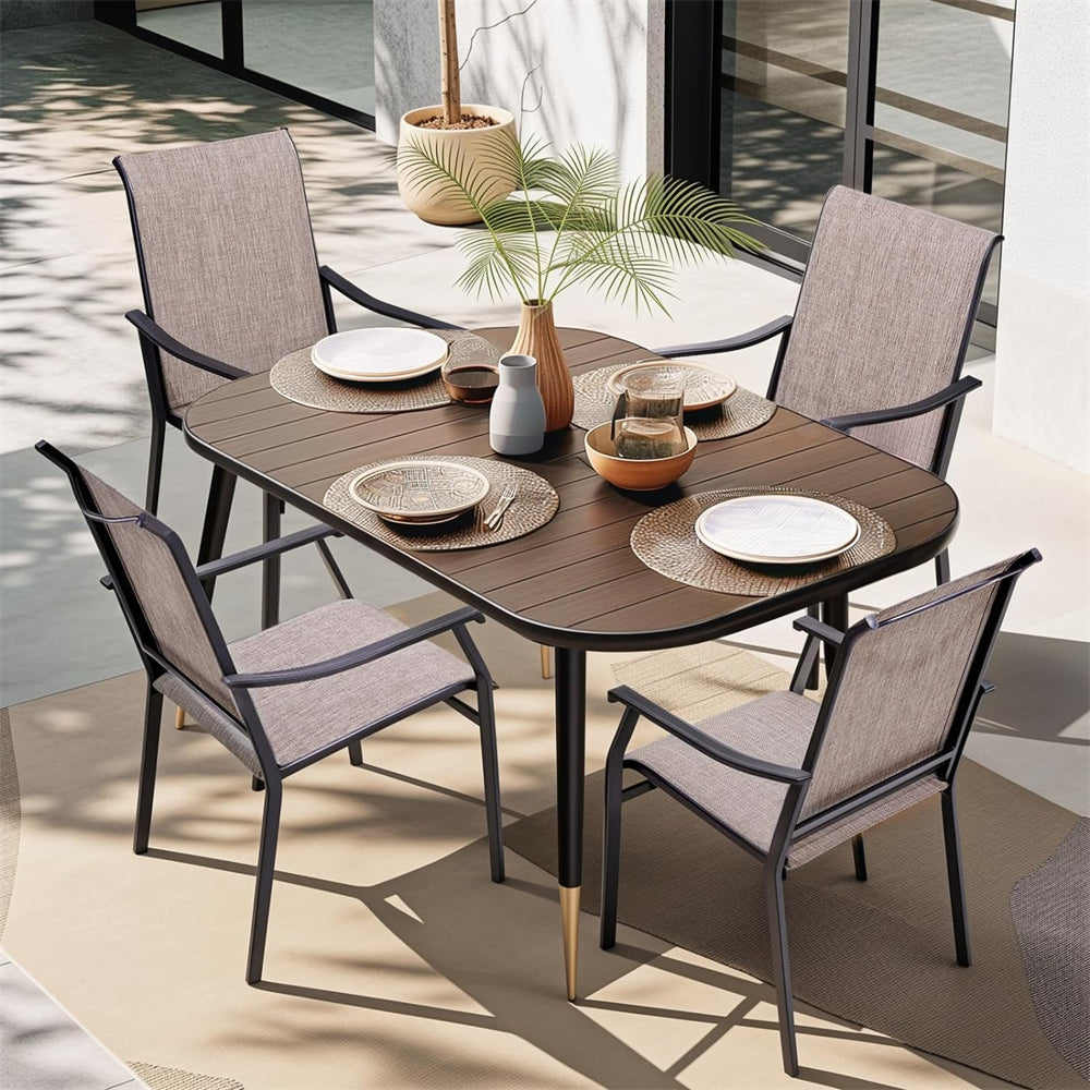 4 Piece Patio Dining Chairs, Outdoor Armchairs with Curved Armrests