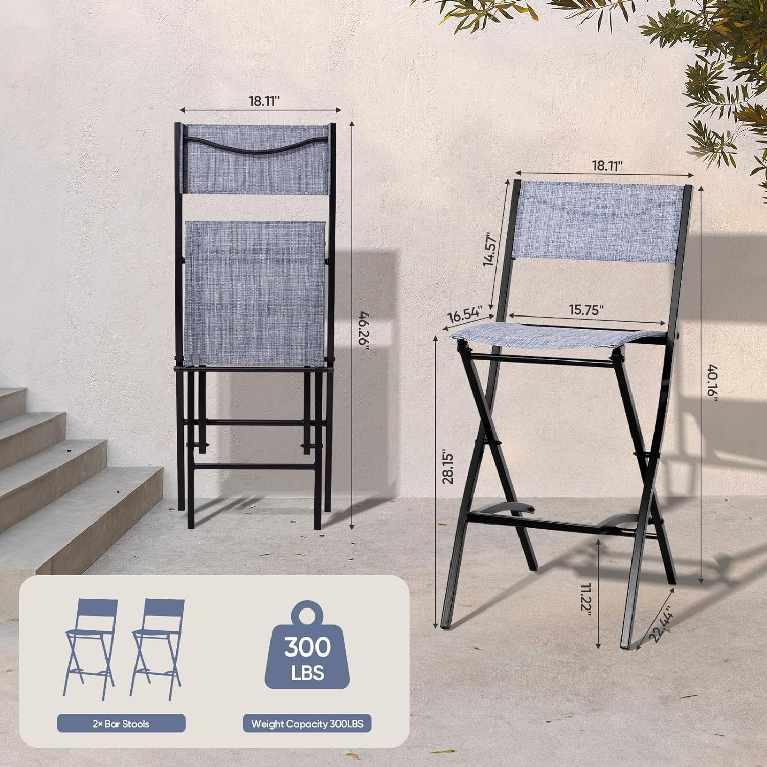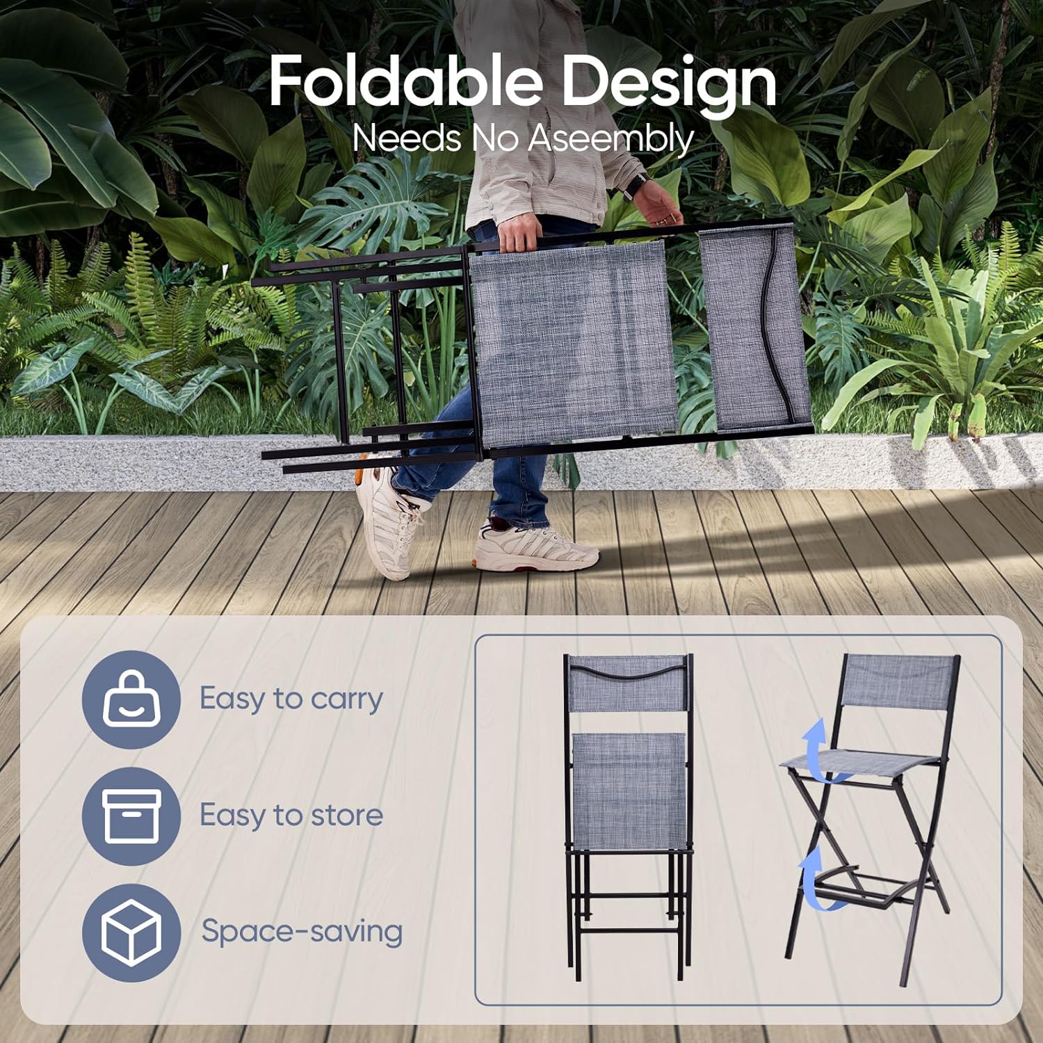 4 Piece Patio Folding Chairs, Portable Foldable Outdoor Bar Chair